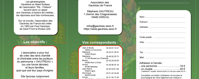 Vous pourrez y trouver des informations généalogiques, des services pour voyager, ou tout simplement découvrir d’autres GAUTREAU près de chez vous et au cours de l’assemblée annuelle.
