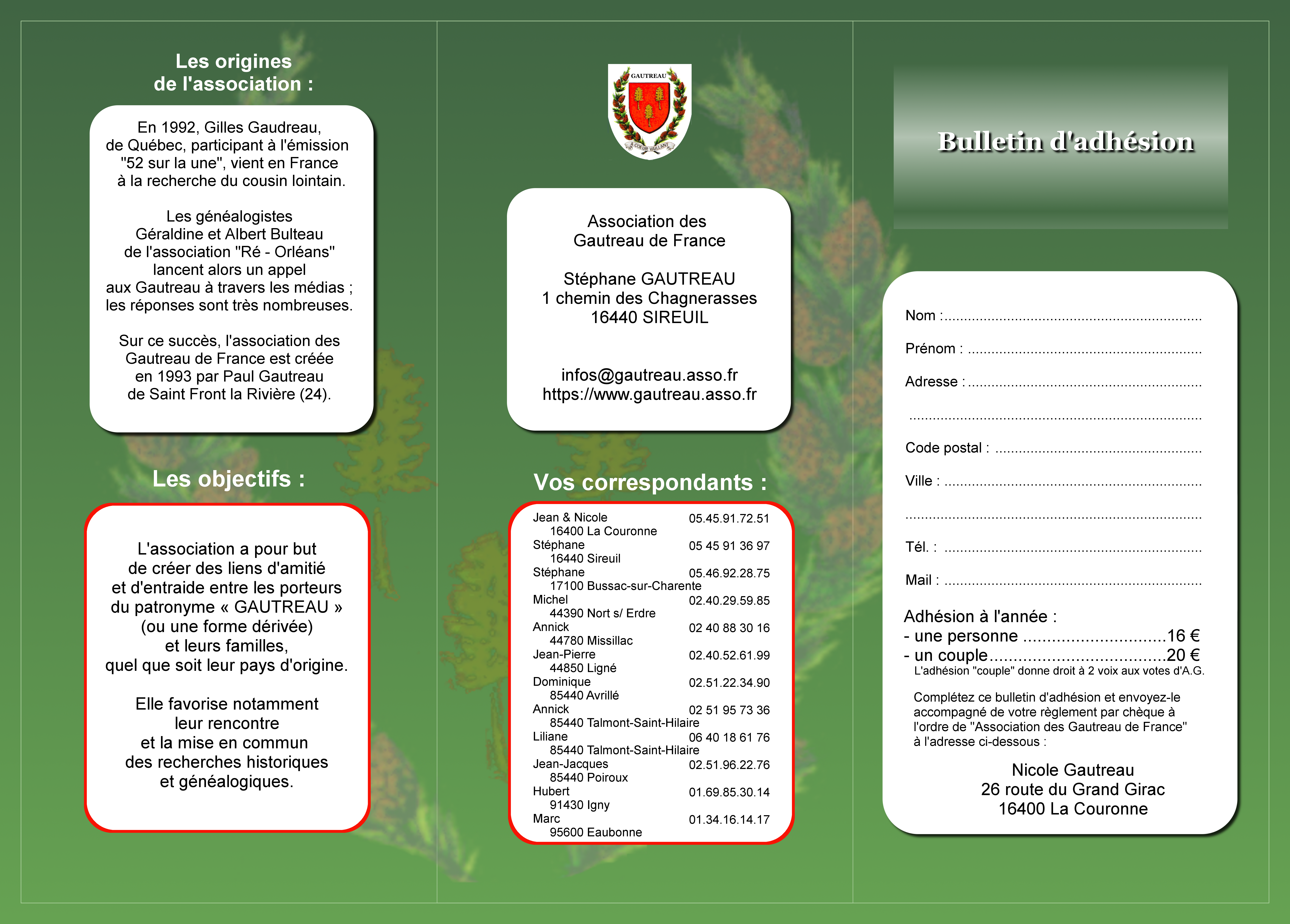 Plaquette et adhésion Pour mieux nous faire connaître, nous avons édité une plaquette d’information 3 volets sur l’association.